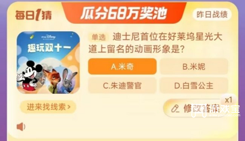 1 、上留迪士尼首位在好莱坞星光大道上留名的迪士大道动画动画形象是?